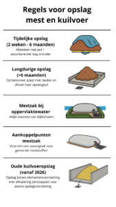 Aan welke regels moet de opslag van kuilvoer, champost, plantenresten, compost en mest voldoen?