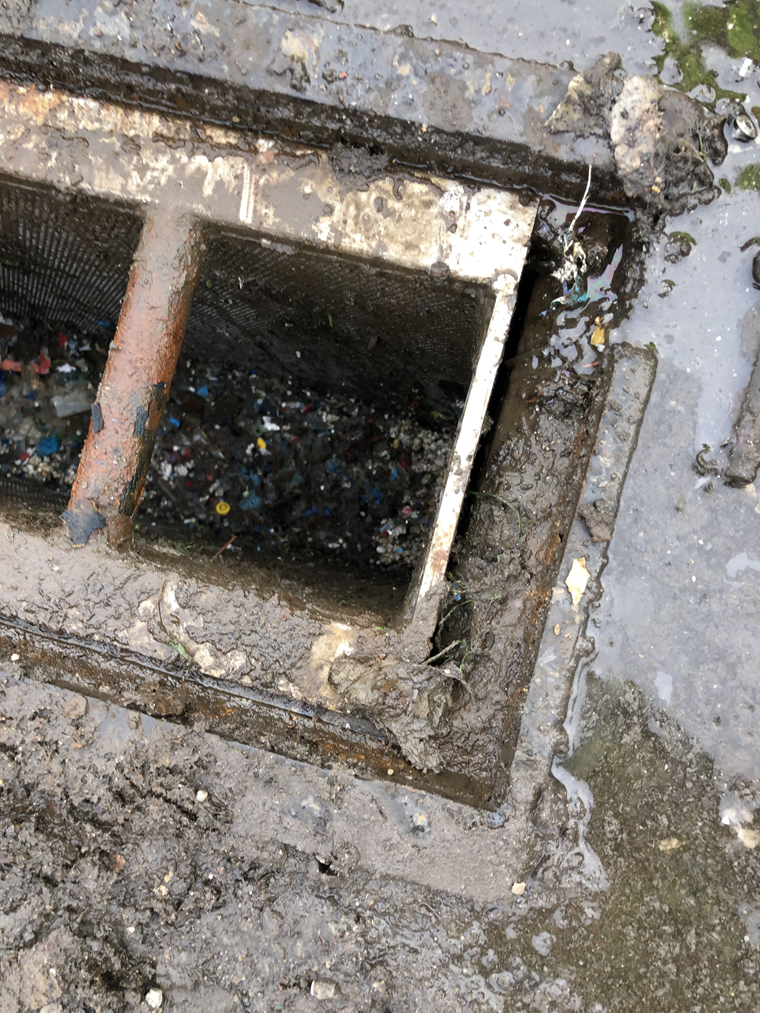 - Vang nurdles op door het plaatsen van een korf in de hemelwaterafvoer (zie foto). Leeg de korf regelmatig. Het verzamelde afval voert u af met het bedrijfsafval.